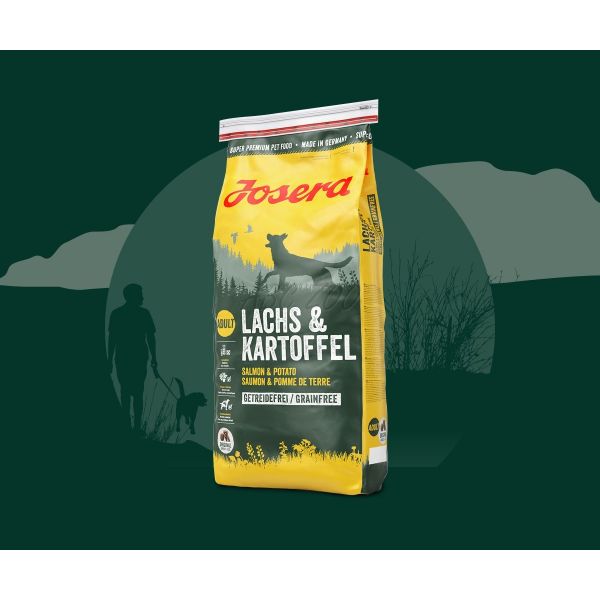 Josera Salmon dhe Patate është ushqim kokër për racat e mesme dhe të mëdha. Ka përmbajtje monoproteinike salmon dhe nuk ka përmbajtje të drithërave. Për shkak të përmbajtjes së balancuar është i përshtatshëm edhe për qen senior.