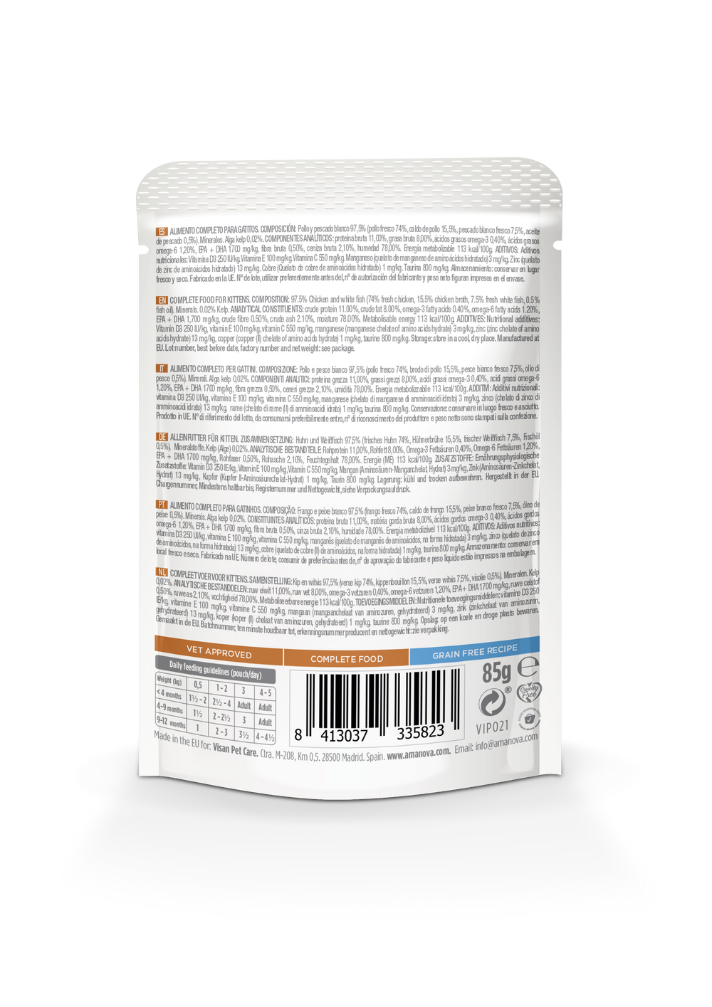Ushqim i lëngëshëm për kotele, Amanova Kitten Pouch, 85 gr.