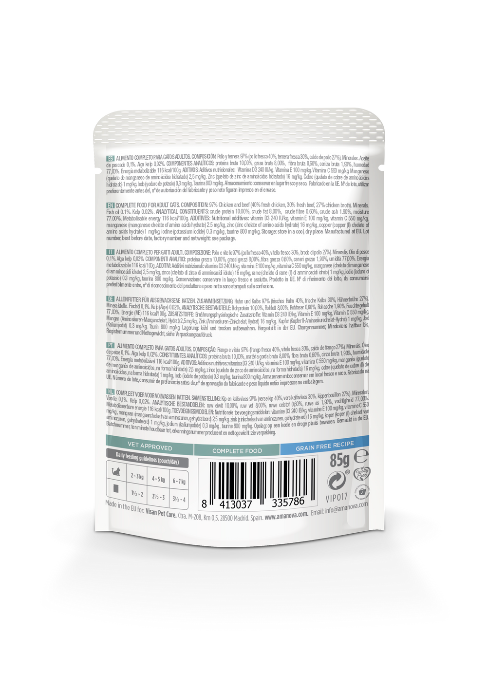 Ushqim i lëngëshëm për mace, Amanova Briliant Beef & Chicken, 85 gr.